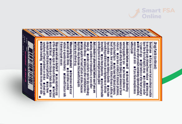 Ask a doctor or pharmacist before use if you are: taking sedatives or tranquilizers, or any other sleep-aid; under a doctor's care for any continuing medical illness; taking any other antihistamines; taking aspirin for heart attack or stroke, because ibuprofen may decrease this benefit of aspirin; taking any other drug. When using this product: drowsiness will occur; avoid alcoholic drinks; do not drive a motor vehicle or operate machinery; take with food or milk if stomach upset occurs.